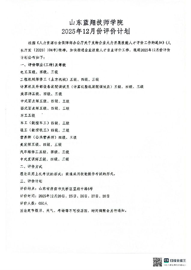 山东蓝翔技师学院S20251025批次公示声明