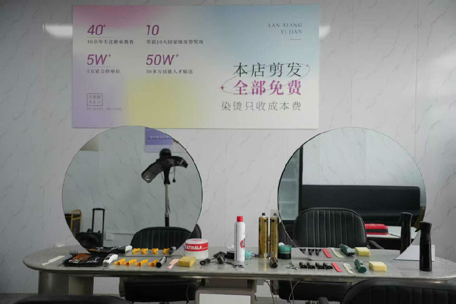 在深耕教学的同时,学院始终将“技能惠民”作为人才培养的延伸方向:除每年组织美容美发专业师生开展进社区、进机构公益剪发活动外,学院设立的“蓝翔益剪”门店,面向社会公众提供免费理发服务,成为颇具口碑的“技能公益品牌”。