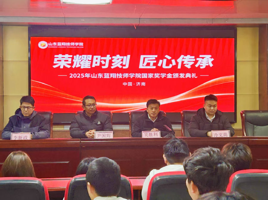 12月15日下午,“荣耀时刻,匠心传承——2025年山东蓝翔技师学院国家奖学金颁发典礼”在学院教学楼会议室圆满举行。
